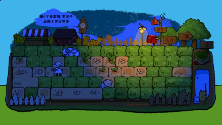 用键盘来代替农场空间的放置经营游戏,基本键盘的每一个格子都可以敲击,从而让农场发生变化,连续敲击同一个格子键位,可以实现自动播种、浇水和收获,滚键盘就可以了,不用刻意去敲。基础操作介绍由羊来告知,点两下就能发现,上手很简单。