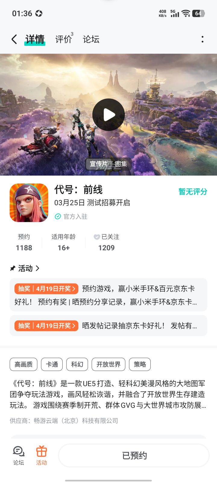 亲爱的征服者:《代号:前线》预约通道现已开启,征服者的每一份关注和支持都对我们都至关重要!感谢您的支持,我们也特意为各位准备了预约好礼,即日起预约游戏,并在评论区晒出分享截图,将有机会获得小米手环、京东卡好礼! 【活动时间】2026年3月20日 - 2026年4月19日 【参与方式】第一步:在Taptap平台搜索《代号:前线》,或点击下方链接进入游戏详情页,点击“预约”按钮;第二