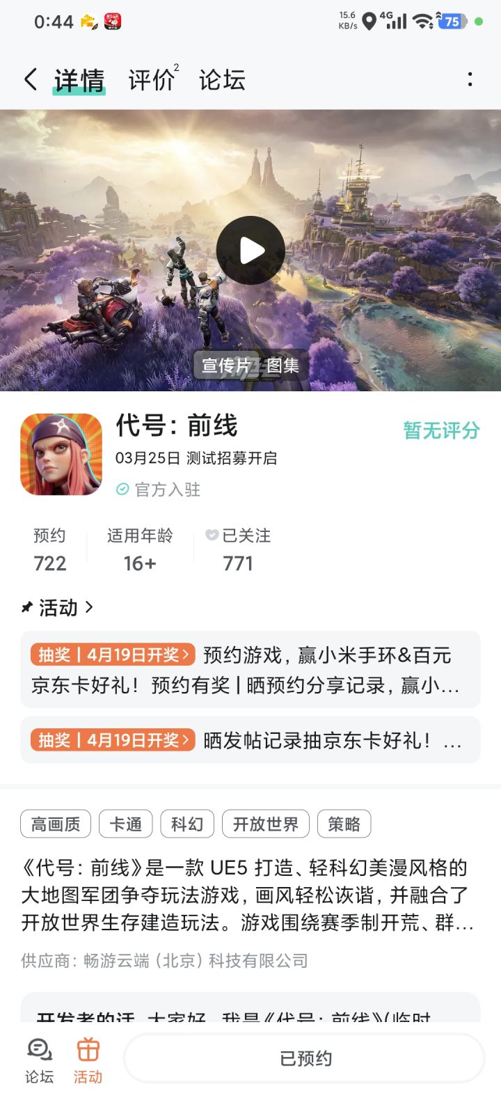 亲爱的征服者:《代号:前线》预约通道现已开启,征服者的每一份关注和支持都对我们都至关重要!感谢您的支持,我们也特意为各位准备了预约好礼,即日起预约游戏,并在评论区晒出分享截图,将有机会获得小米手环、京东卡好礼! 【活动时间】2026年3月20日 - 2026年4月19日 【参与方式】第一步:在Taptap平台搜索《代号:前线》,或点击下方链接进入游戏详情页,点击“预约”按钮;第二
