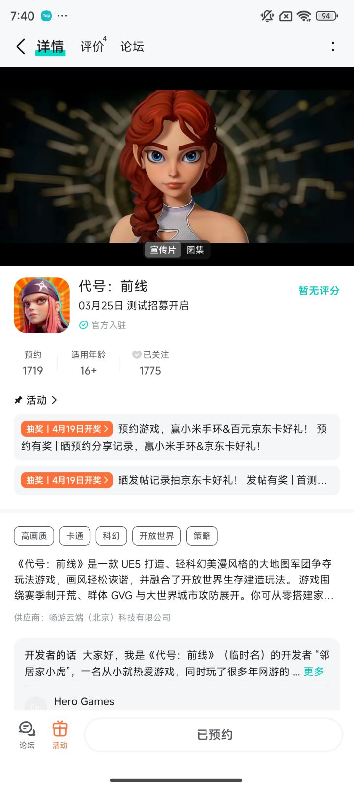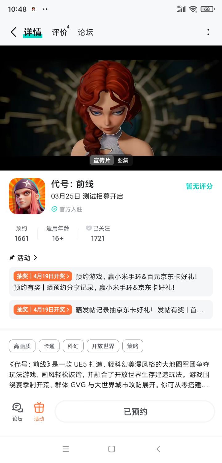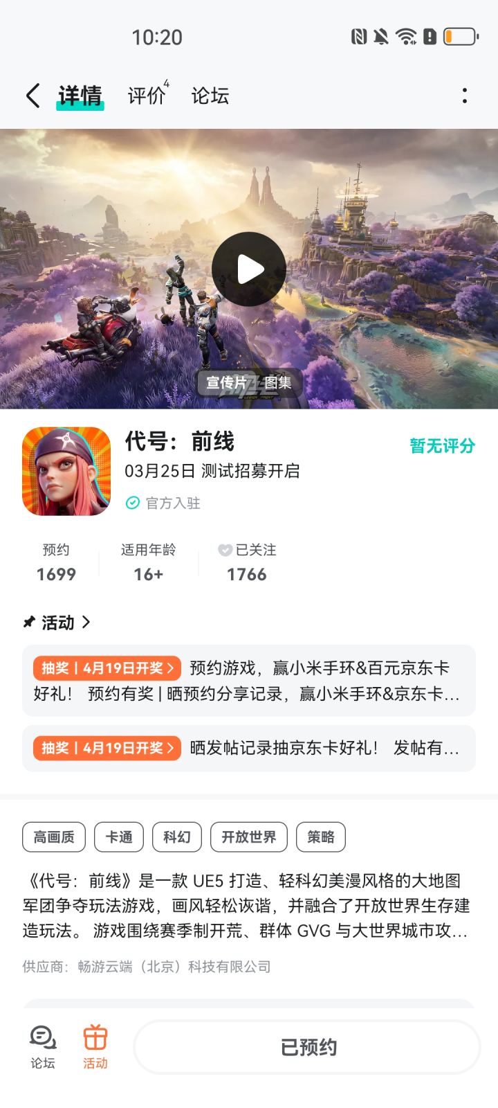 第一步:在Taptap平台搜索《代号:前线》,或点击下方链接进入游戏详情页,点击“预约”按钮;