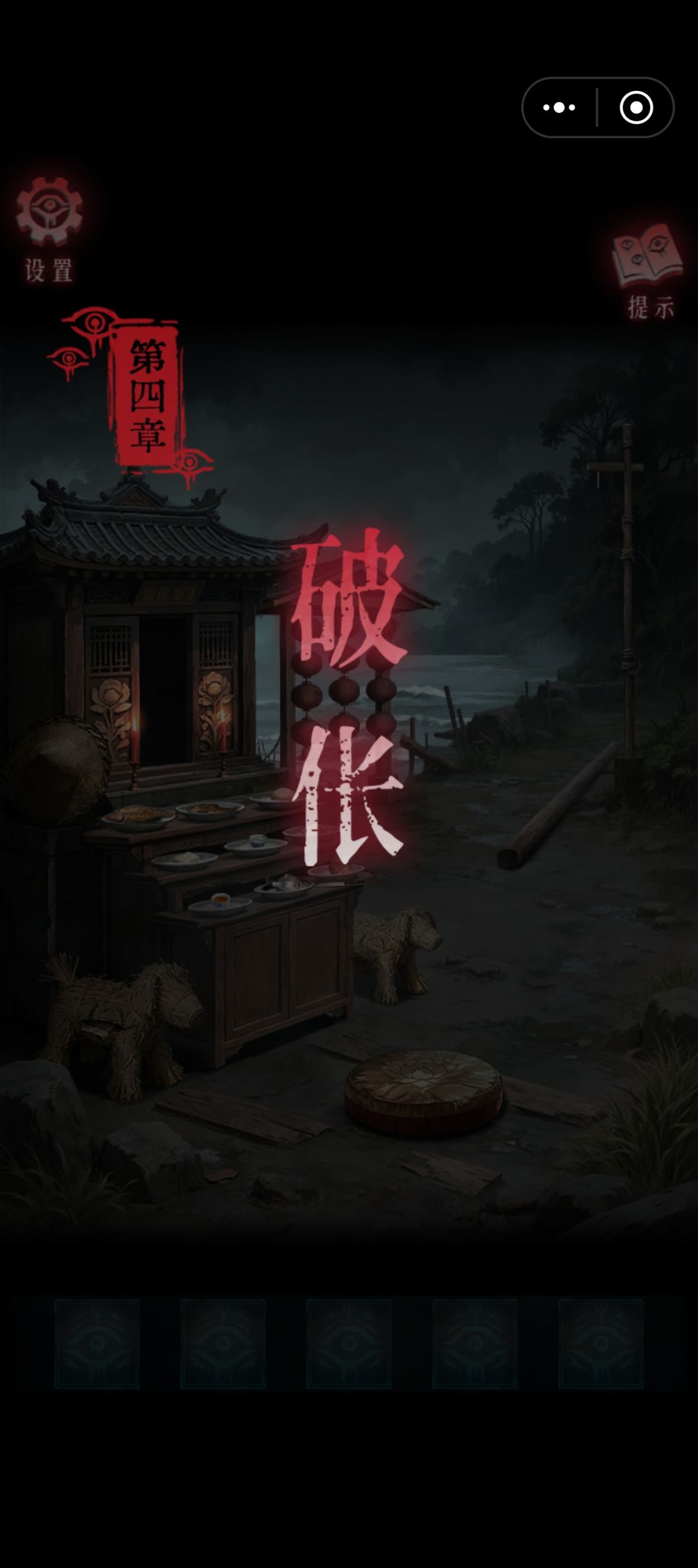 桌子上拾取水果刀 用水果刀割开刍狗的肚子(一笔画小游戏)获得捆绳残段 用绳子拉起边上的木桩 获得巽字旗 根据供桌柜子上的提示 调整餐盘如图 获得木槌 拓印粉墨 旗阵阴阳录 灯笼边获得布片 根据布片提示调整灯笼明暗如图 获得旧罗盘 路引纸 根据路引纸的线索走出森林 右中右中左左 从书包里获得软木刷 宣纸 照片 走右边出森林 和老爷爷对话 根据旗阵阴阳录调整旗阵 旗杆位置不固定 先天阵坤巽坎艮在阴影处