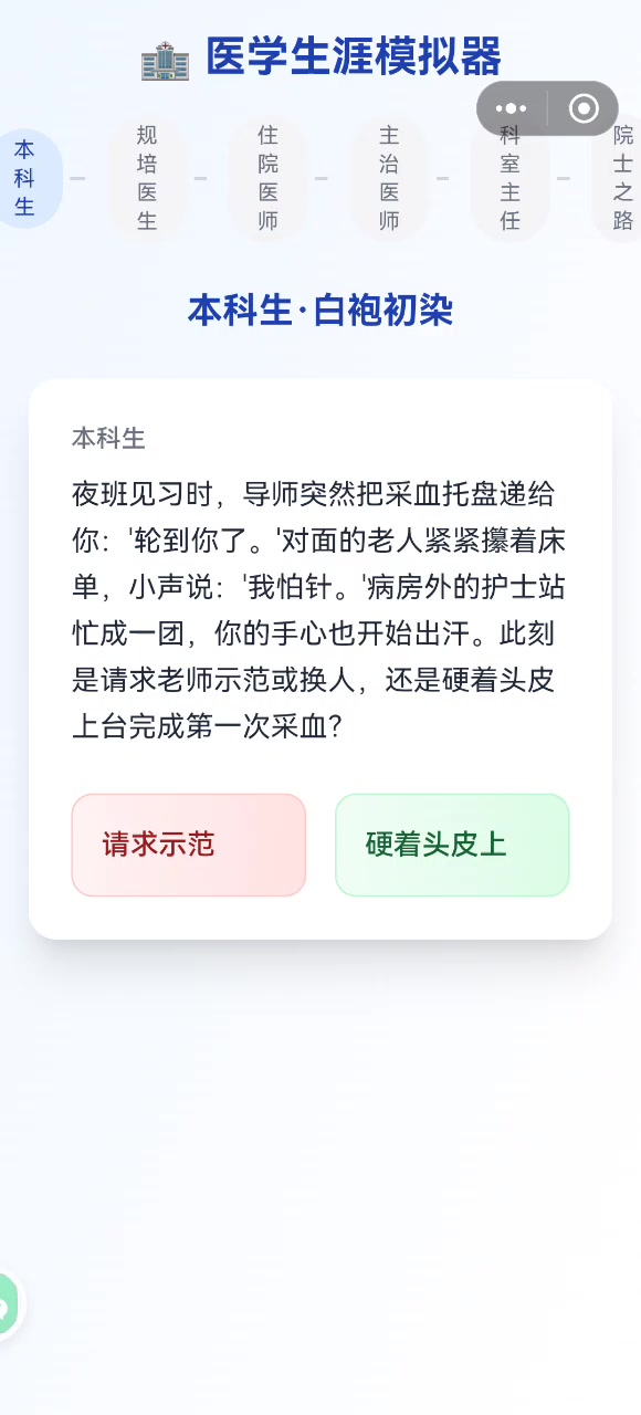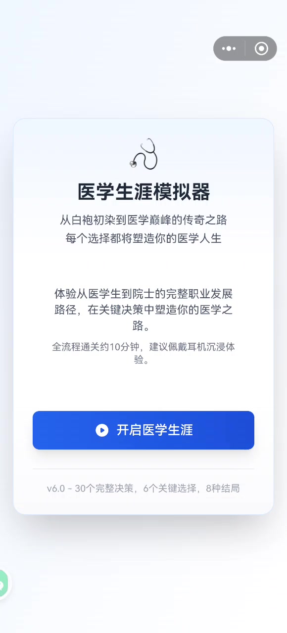 💔 哨声的代价 正义代价,寒风独行 你选择一次次吹响哨声,却也一次次被体制的风雪刮伤。晋升被拖延、手术被卡住、合作被冷却,但你仍把证据递到光里。你成了年轻人的火种,也成了某些人眼中的刺;那些曾与你并肩的背影渐渐远去,只剩你在深夜的灯下整理散落的报告。当孤灯下的诊室只剩你和病历时,你才明白:正义从来不是免费的,但仍值得有人替这个时代支付。 🤖 AI毒舌评价 "“理想主义玩家的医学生涯:用哨声召唤正义