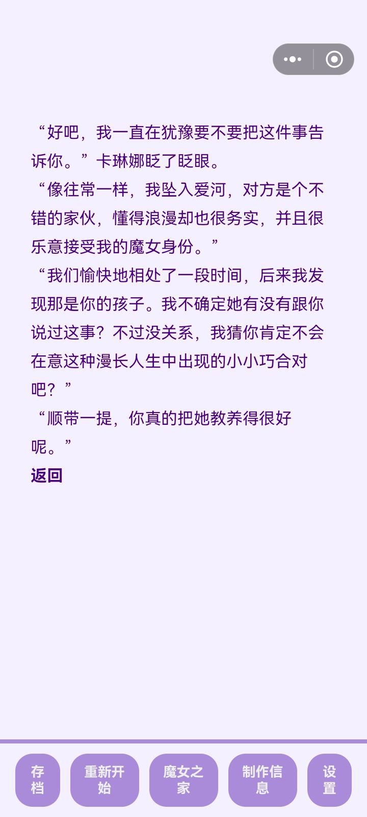 因为玩家与卡琳娜的谈话都是回忆式的,也就是说发生时间不确定,孩子好像也没跟老妈说过恋人名字什么的,不能确定是哪个孩子吗。我产生疑惑主要是因为第五和第六个孩子图快纯刷了,完全没看文本,然后第六个孩子结局好像是结婚了但不太顺利,和第一孩子一样。然后第六个养完去找卡琳娜聊天,看见她和我娃谈有点懵了,也不知道是和哪个谈的,有没有结婚…结婚了我都没见过面吗?话说我女儿和她同性可以结吗?还有就是从第一个