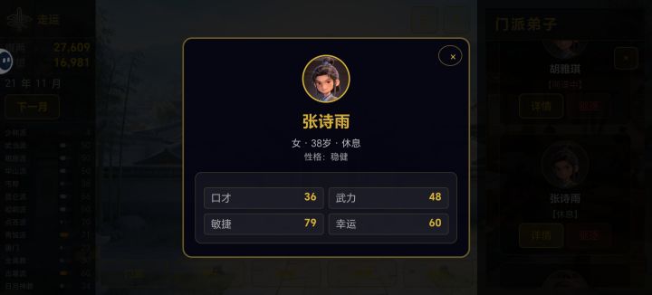后面的弟子我要用得上,但是它被an排在最底下了,能全部安排当间谍了,但是死亡率间谍死亡率又太高,好不容易挑选出来几个人,但是我对做任务要下面的弟子,但是它不能往下滑,它只有只能选九个,但是这九个我又用不上,真他妈无语了