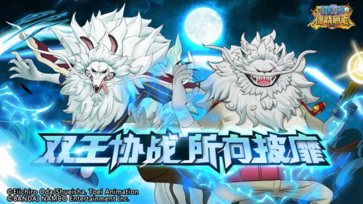 新区限定爆料PS:本篇为新区限定爆料,新区船长看过来~在新春到来之际,我们的超人气国王组合将与新区船长共度新春哦~ 他们就是被誉为佐乌第一战士的日间之王——犬岚公爵,以及夜间之王——猫蝮蛇老大!官方君再次强调一下哦~猫蝮蛇老大与犬岚公爵在最新篇章中,已向船长们展现了强大实力!在凝视月光后,将化身月狮,双王协战可直接击败旱灾JACK!!如今,双王即将携手登场,就让我们一起看看他们的强大战斗