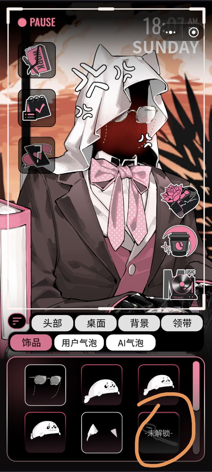 p5可以得到 饰品-海豹x3p6可得到 饰品-眼镜上班3h解锁的领带,需要 晚上6点后 点开计时输入“加班”,三个小时(官方消息,帖主暂时未实测)需要3h和8h解锁的物品,有bug暂时无法获取欢迎指正和补充检查了一下,除了要靠长时间积累的物品我都有了,这个攻略应该算是比较全面的了,如果我没有漏写..那么这个攻略可以获得目前所有的物品#续杯咖啡