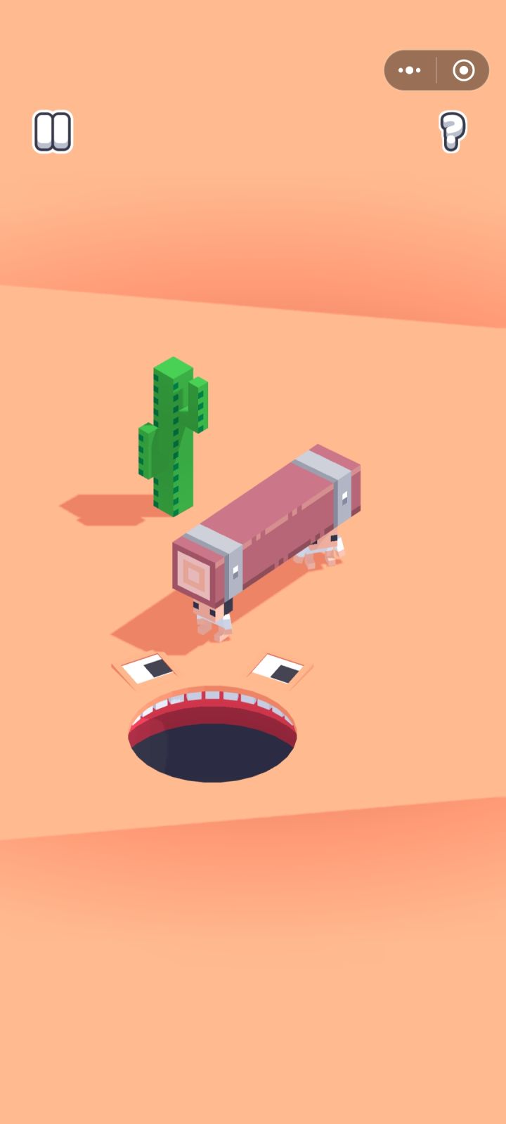 为了增加游戏的难度,游戏每隔几个关卡就有不同的主题,第一个主题非常简单,因为这些白色的小人看到我们会本能的避开,只要我们不在他们周围拉扯就可以顺利通关;但第二个主题就有些难度了,因为绿色的小人会本能地追逐我们洞口的脚步,主动跳下去,因此我们要学会放风筝,通过在周围吸引他们的视线,等到它们与物品有一定的距离后,我们再快速的挪动回去,打一个声东击西;第三个主题多了一个限制,除了不能吸人以外,还不能让物品掉出周围的边框外,不然也会结束游戏,这个主题的建筑都是高楼,所以很容易就会打破第二个限制,难度再次上升。