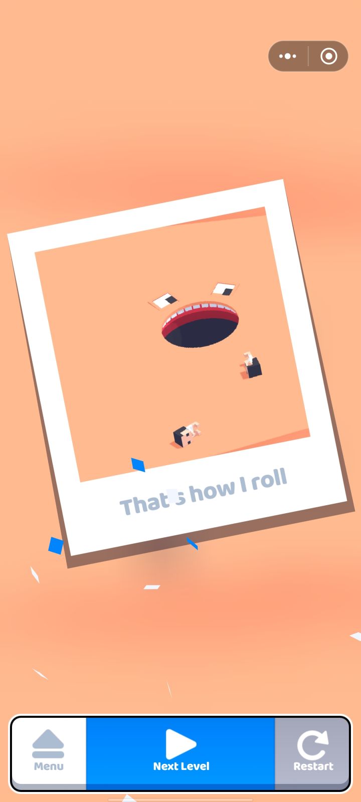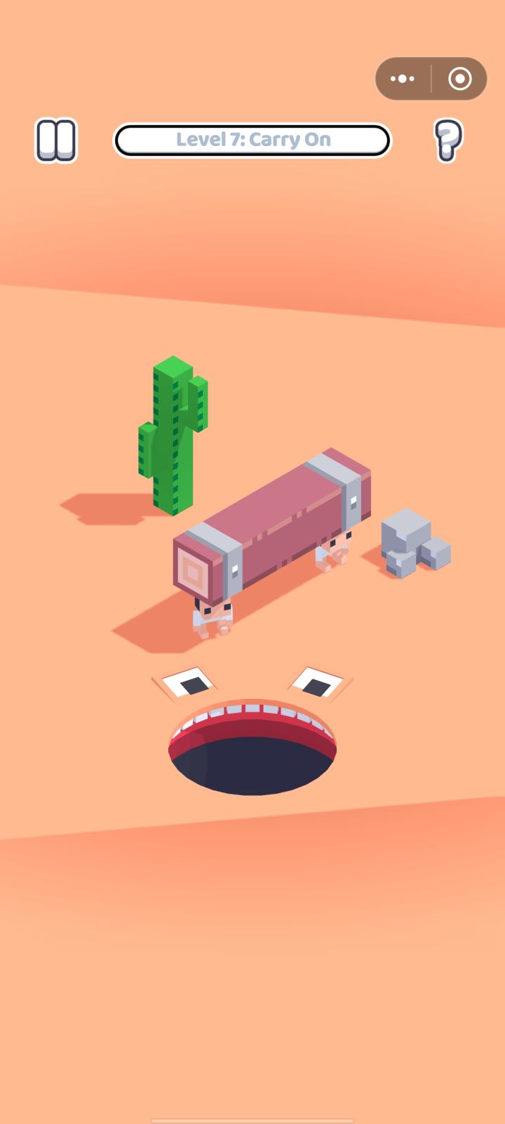 游戏的基本玩法很简单,玩家操作的是一个张开大嘴的洞,可以吸收任何可以吞下的东西,而且每吞下一个物品就可以长大一些,慢慢地可以吞噬关卡里一开始吞不了的物品。不过游戏有个基本的限制,就是不能吞噬任何活着的人,一旦有人类被我们误食,关卡挑战就会直直接失败,因此我们必须小心翼翼但又要风驰电掣的行动。