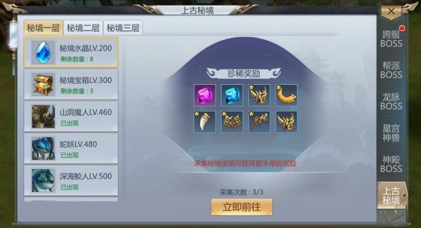 由万达院线游戏发行的国民级仙侠手游《天生不凡》即将在11月7日迎来新版本“上古秘境”。这一次,新版本将会带全新玩法,同时还伴有强大的凶兽为你助阵,而且新的活动还有各式各样的礼品、全新珍稀时装等你收入囊中,下面小编将为大家提前透露新玩法介绍,各位仙友们还不赶快过来围观看看,提前预习功课啦!上古秘境跨服作战 杀怪采集双收益“上古秘境”是一个跨服玩法,总共分三层,每层地图8只BOSS和若干采集物,仙