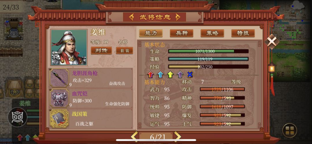 本攻略会把武将的定位、特技、强度、配装、适合思路等位置来解析。 本攻略所做的武将先后与强度无关。 先写明两个:提档图和星星描述 本攻略特别鸣谢: 怕佬、小庄、量子、╭孽海ツ情天大佬、白大佬等对我的支持 1.魏延 属性分析 魏延的基础属性是比较好的,武力和防御都是五星,70的智力也让他比其他武将可以更好抗住法术攻击。 不过敏捷和运气较低,所以魏延也是比较打铁的。所以可以给魏延6个征兵束(敏捷果子),