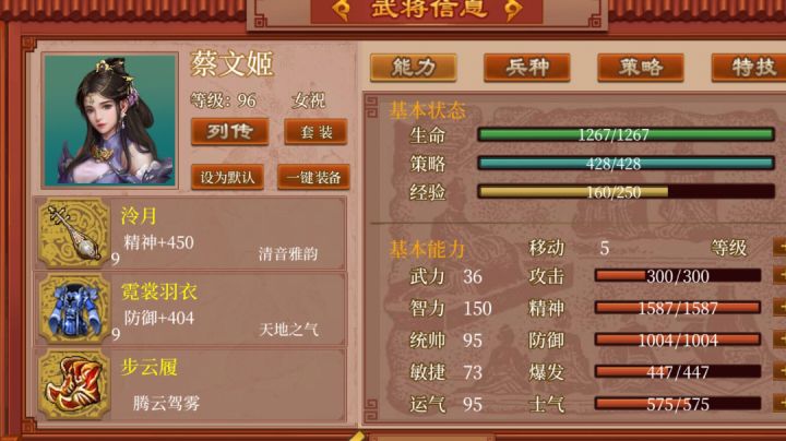 人物简介廖化,字元俭,为关羽帐前主簿,关羽败亡后,诈死归汉。后参与夷陵之战和多次北伐,后官至右车骑将军,假节,领并州刺史,封中乡侯。蜀汉灭亡后,被迁往洛阳,于中途病逝。属性分析:武力:82(3星) 智力:60(2星) 统帅:77(3星) 敏捷:92(4星) 运气:89(3星)由于廖化待机时间长,从走单骑到灭国都在,所以是比较值得投资的。比如可以给13个进军鼓,把武力提到4星;给18个布阵令,把统帅提到4星。这些都是比较值得的。注:四转义侠的,可以给爆发补三个束兵钲,提到五星;五转名侠的话,可以补三个进军鼓,提到四星(上面的13个就不用吃了)如果转武道家的话,则是建议吃到五星攻击,也就是13个进军鼓;还有建议3个束兵钲,把敏捷提到四星皮肤分析蜀中无将:随着回合增加,自身防御也增(没有上限)经过测试,他是按面板算每回合加1%,某些大型关卡回合多,会强势一些,推荐度不算高。廖化目前没有三级皮特技分析:主动技:义勇当先cd:5技能效果:先手攻击技能不错,可以打三回合先手秒人;也可以抗伤(先手后被攻击,所受伤害会变低)被动技:掠夺攻击技能效果:攻击敌人时可以获得铜币经过测试,所得铜币是所打伤害的10%,所以输出越高,钱越多(缺铜币的大佬可以划重点了)转职分析:廖化的转职分为侠客线和武道家线,二者各有各的优势侠客:连击几率高,可以拿剑/刀,并且策略有致盲。总体来说非常不错,是我个人一般玩的兵种,非常喜欢致盲去限制敌军主将的输出,为我军创造条件。武道家:暴击几率高,可以拿刀/斧,策略有气和。一般就是玩输出,比较强的地方是,廖化本身的强敏捷可以和武道家的特技相配合,开主动技的同时,先手双击加暴击,非常强势。装备分析:义侠:义侠的打法基本有一种走辅助一种走输出一种技巧分别叙述1.辅助流:章武剑+飞龙大氅+青铜盾/青囊书这套很简单,章武加属性,飞龙和青铜盾配合廖化本身的高敏捷去格挡;但是大多数时候青铜盾可能给简雍,所以也可以适当更换2.输出流:青龙刀+气刚/凤凰+飞刀这套输出比较暴力,青龙刀本身就是致命一击,加上气刚的加全能,伤害更高。加上飞刀所增加的攻击范围,以及廖化本身的高敏捷造成的双几率,使得非常暴力3.技巧类:双股剑/双铁戟+凤凰羽衣/飞龙大氅+铁鞭这套则有一定的实战效果。廖化特技一开,先手攻击使义侠的双击得到在敌方回合显露的机会。可以在敌方人群中大展身手,配合双股剑/双铁戟可以造成三连击,凤凰的续航或者飞龙的格挡都可以有效的面对敌军的那一下攻击;铁鞭则可以使第2、3下攻击伤害最大化。武师:廖化走武师装备也就比较单一,就只有走输出一套。低资源:大斧+凤凰+汗血马这套成本比较低,大斧和汗血马主输出,凤凰续航高资源:高色烈云虎啸刀+气刚斗衣+继志铭/壶中日月这套则主要是靠打极致输出来玩,继志铭可和被动配合,打出暴击伤害,触发引导刀的引导攻击,气刚则加伤害;如果伤害足够的话,也可以换壶中日月来增加效率ps:另外不推荐廖化带新亭侯/漆黑长刀,因为与廖化的主动有冲突,先手仍然会被敌军攻击