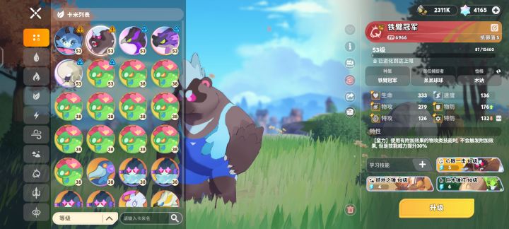 0氪这样感觉已经没什么可以提升的了,就等着慢慢拿资源培养。天赋值很重要,铁臂冠军物攻明明种族值很高,但是一开始抓的天赋值低,30级物攻就69,明显就是逼着玩家重复捕捉。感觉完全体可以自学一个本属性a级技能就好了,可惜a级技能卡限制2次学习,s级限制只能一次学习,a都级抽不到几个,唉