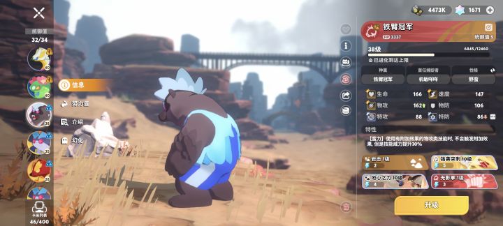 0氪这样感觉已经没什么可以提升的了,就等着慢慢拿资源培养。天赋值很重要,铁臂冠军物攻明明种族值很高,但是一开始抓的天赋值低,30级物攻就69,明显就是逼着玩家重复捕捉。感觉完全体可以自学一个本属性a级技能就好了,可惜a级技能卡限制2次学习,s级限制只能一次学习,a都级抽不到几个,唉