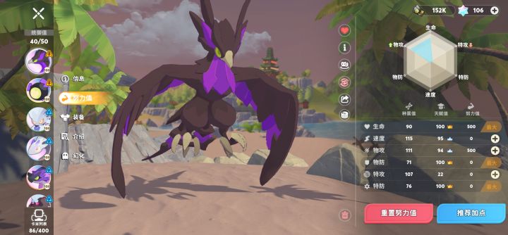 0氪这样感觉已经没什么可以提升的了,就等着慢慢拿资源培养。天赋值很重要,铁臂冠军物攻明明种族值很高,但是一开始抓的天赋值低,30级物攻就69,明显就是逼着玩家重复捕捉。感觉完全体可以自学一个本属性a级技能就好了,可惜a级技能卡限制2次学习,s级限制只能一次学习,a都级抽不到几个,唉
