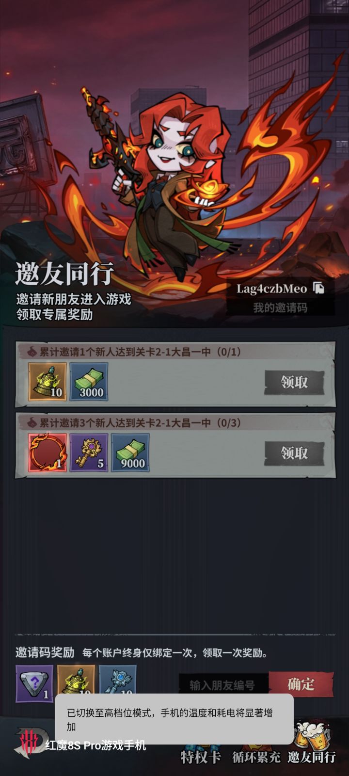 5级时可在特权福利~邀友同行输入同行礼包码: Lag4czbMeo立刻获得: 银箱子钥匙*10,唤宠铃*10,紫色符文*1 点头像~兑换码: vip666 vip888 vip999 6jtjv7 c97s4h wxlh666 wxlh888 ZB9527 ZrDMw4 UD7C3R WXLHTAP 5级时可在特权福利~邀友同行输入同行礼包码: L