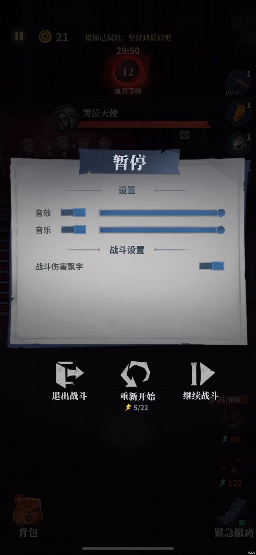 17章BOSS的难点其实不在打BOSS,而在血月之前无法攻击BOSS,这就让玩家没法像其他关卡那样逐步搜点强化,准备好以后再面对BOSS,所以本次视频包括从开始到最后BOSS被击败的全程(BOSS战时手机脱手,导致第一波BOSS放激光时没来得及躲导致血量不够死了一次,小意外不用在意) 进入正题,由于开局天使就出现并全程追踪,那么就需要根据天使的机制来规避,机制就是面对天使的时候就不会行动,那么搜点