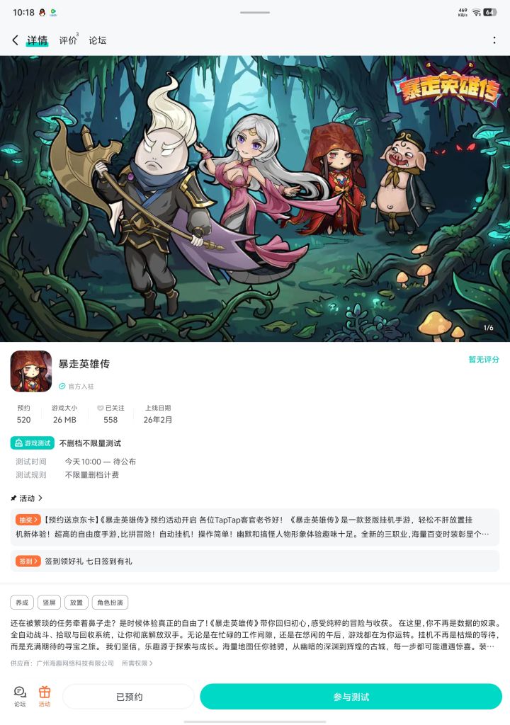 亲爱的玩家们:《暴走英雄传》将于2026年3月3日10:00 首发,欢迎大家前来体验,为此我们特地给大家准备了惊喜哦!快来预约下载吧⬇️⬇️⬇️活动一:新手福利:VIP666、VIP888活动二:添加客服QQ:2757945810领取新手礼包及好友礼包礼包内容:元宝*188、书页*100礼包内容:元宝*100、洗练石*200活动三惊喜福利:为感谢大家的关注和支持,当本活动参与人数超过