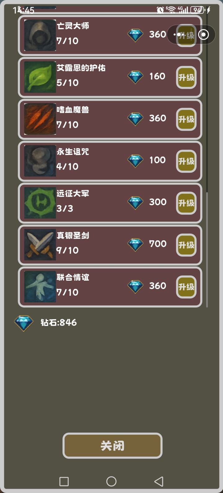 升级如下,有没有大佬指点一下仪式二怎么五星?前期很容易死,后期攒不了金币
