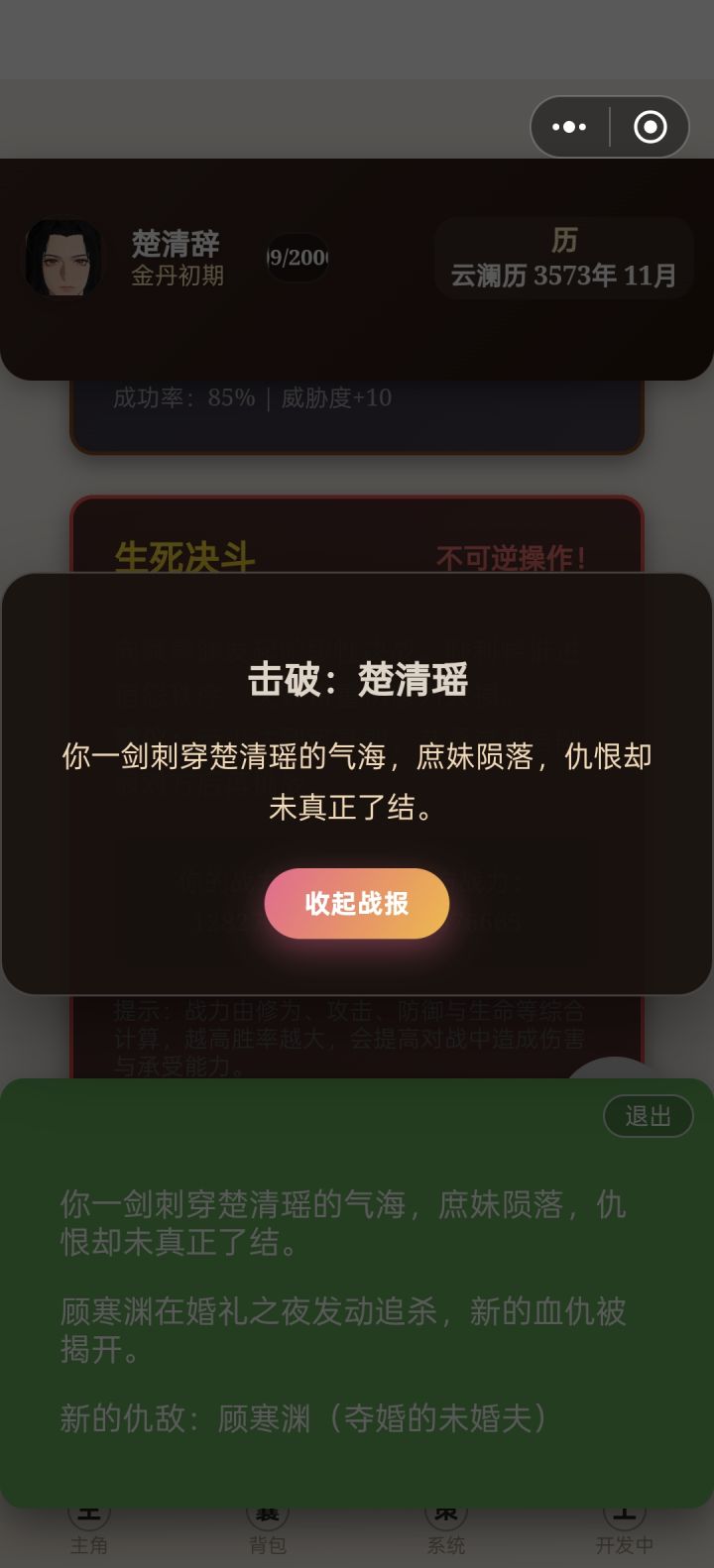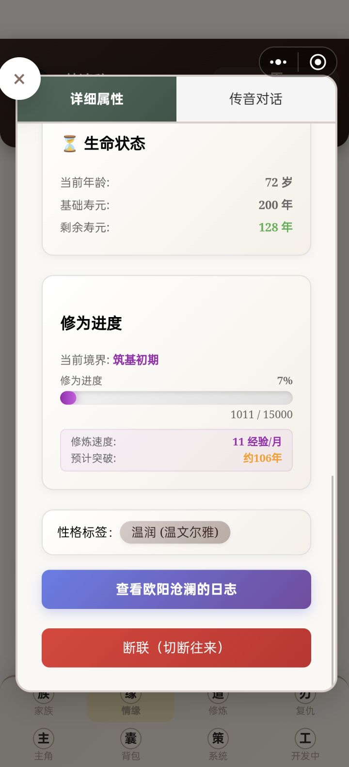前期都让主角自己刷副本修炼,到化神期有点乏力了,准备重心转到养孩子通过反哺提升修为。我把这个游戏分为三个阶段:16-18岁——18岁-30岁(第一个孩子12岁之前)——孩子普遍12岁之后。我目前还在第二阶段,会讲一下怎样更好度过前期,在第三阶段获得最好的开局。剩下的放评论区