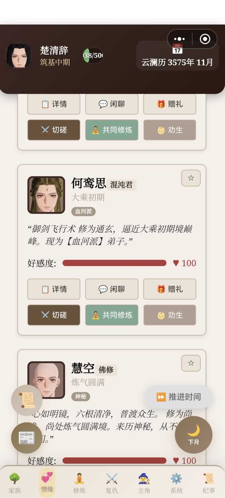女孩得好好培养,要不停下本刷丹药堆数值,周岁刷词条,拍卖会sl 稀有体质丹,刷到手酸,男孩就无所谓了,随便养养,没那么大期待。