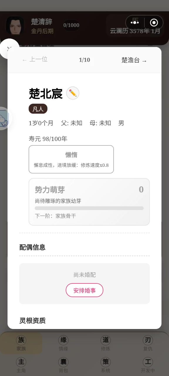 女孩得好好培养,要不停下本刷丹药堆数值,周岁刷词条,拍卖会sl 稀有体质丹,刷到手酸,男孩就无所谓了,随便养养,没那么大期待。