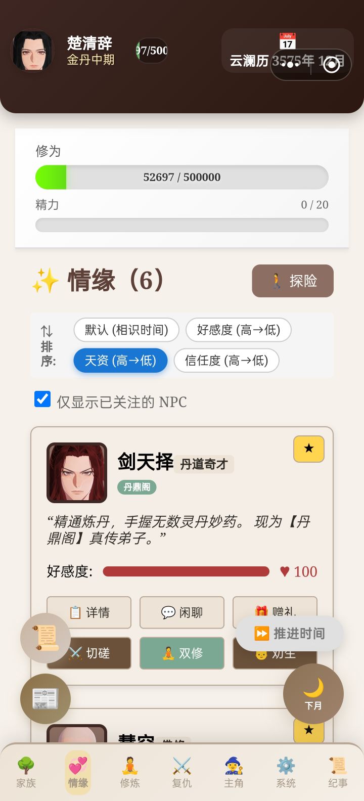 v0222更新内容:轮回系统、子嗣/情缘容量管理、图鉴系统、多处bug修复与功能优化(丹药、背包、产业、秘境等)。本次更新内容较多,存档兼容无法全覆盖,且由于TapTap小程序游戏限制,可能会出现较多无法处理的bug(尤其是存档方面),十分抱歉🧎🏻♂️官方测试群置顶可以领取补偿码,如有需要可前往领取。如遇问题,也可以加入官方测试群反馈,谢谢大家~