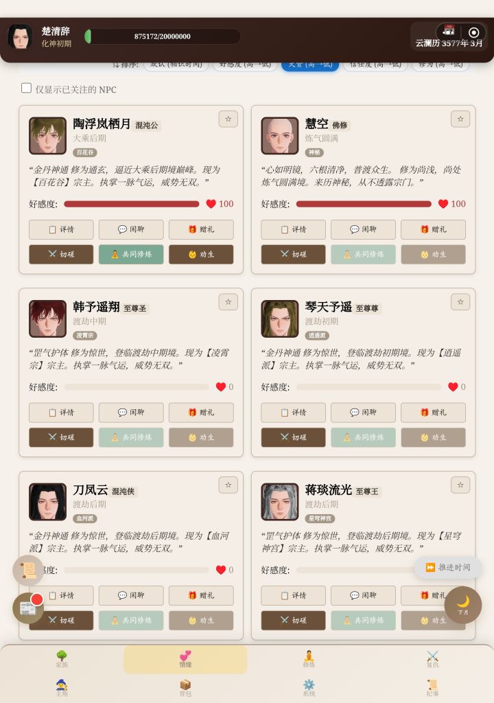 女孩得好好培养,要不停下本刷丹药堆数值,周岁刷词条,拍卖会sl 稀有体质丹,刷到手酸,男孩就无所谓了,随便养养,没那么大期待。