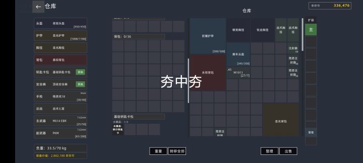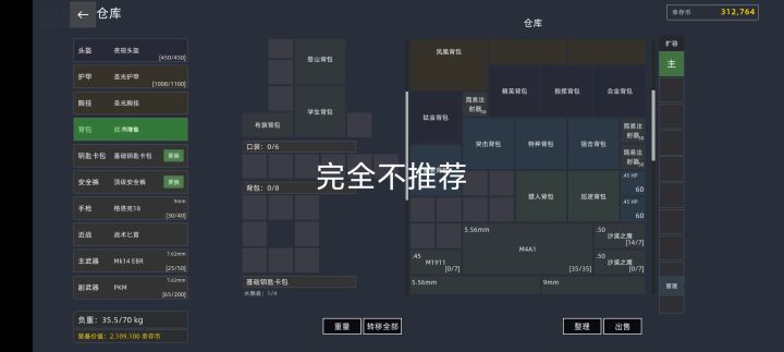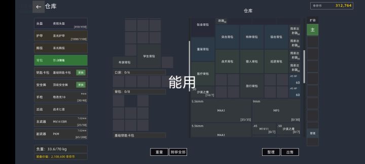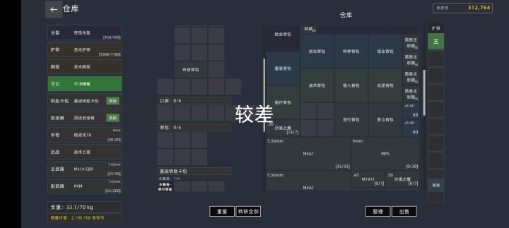 特种背包1.8w两个3*3(经典雨林包爆锤紫包)泰坦背包70w四个3*3医疗胸挂4500一个4*2(没有3*3蓝紫胸挂)圣光胸挂50w两个3*3一个3*2