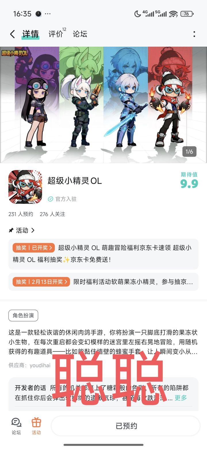 已关注,预约,期待一下超级小精灵OL上线,希望超级小精灵OL越来越好,蒸蒸日上,人气超多。