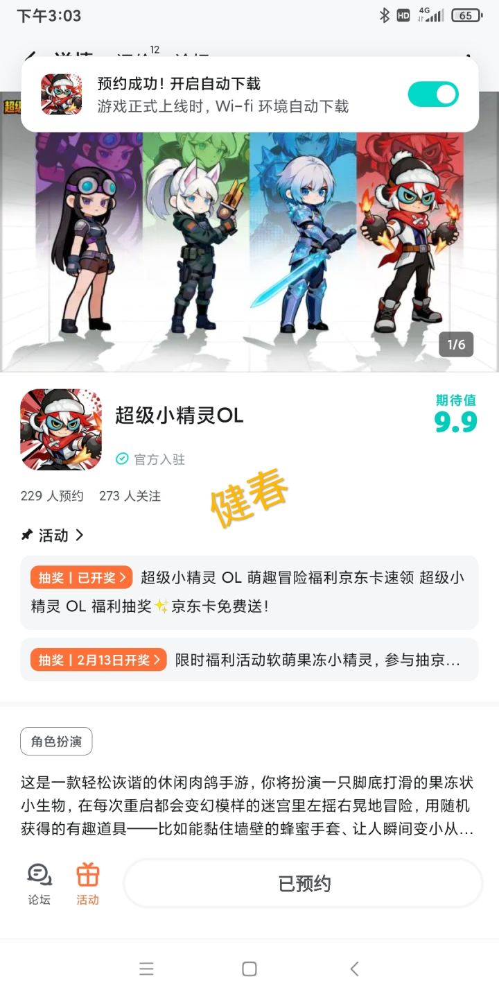 软 fufu 的《超级小精 OL》来送闯关福利啦~化身脚底打滑的果冻小精,在百变迷宫里左摇右晃冒险,蜂蜜手套、缩小泡泡、彩虹滑板趣味道具轮番上阵,失败解锁新装扮、成功还有滑稽庆祝,治愈又欢乐的冒险等你来玩!本次准备了5 份豪华礼包码,钻石、召唤券、海量材料一键拉满,助力小精轻松闯迷宫✨🎁活动奖励抽取 5 位幸运玩家,各获得【超级小精 OL 豪华礼包码】×1礼包内含:钻石 ×16400,高