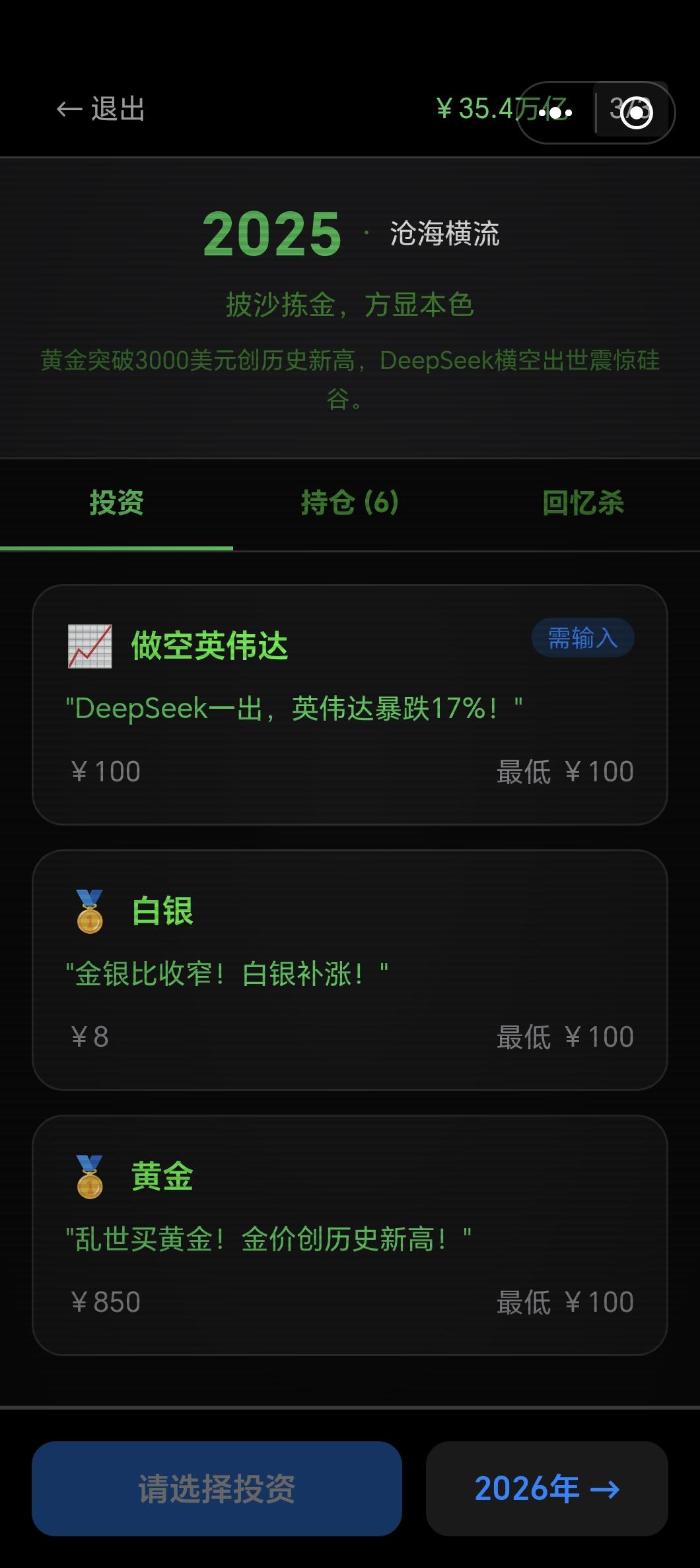 ,挺有意思的,建议后期可以把每年的选择做的多一些,让玩法更多样一点
