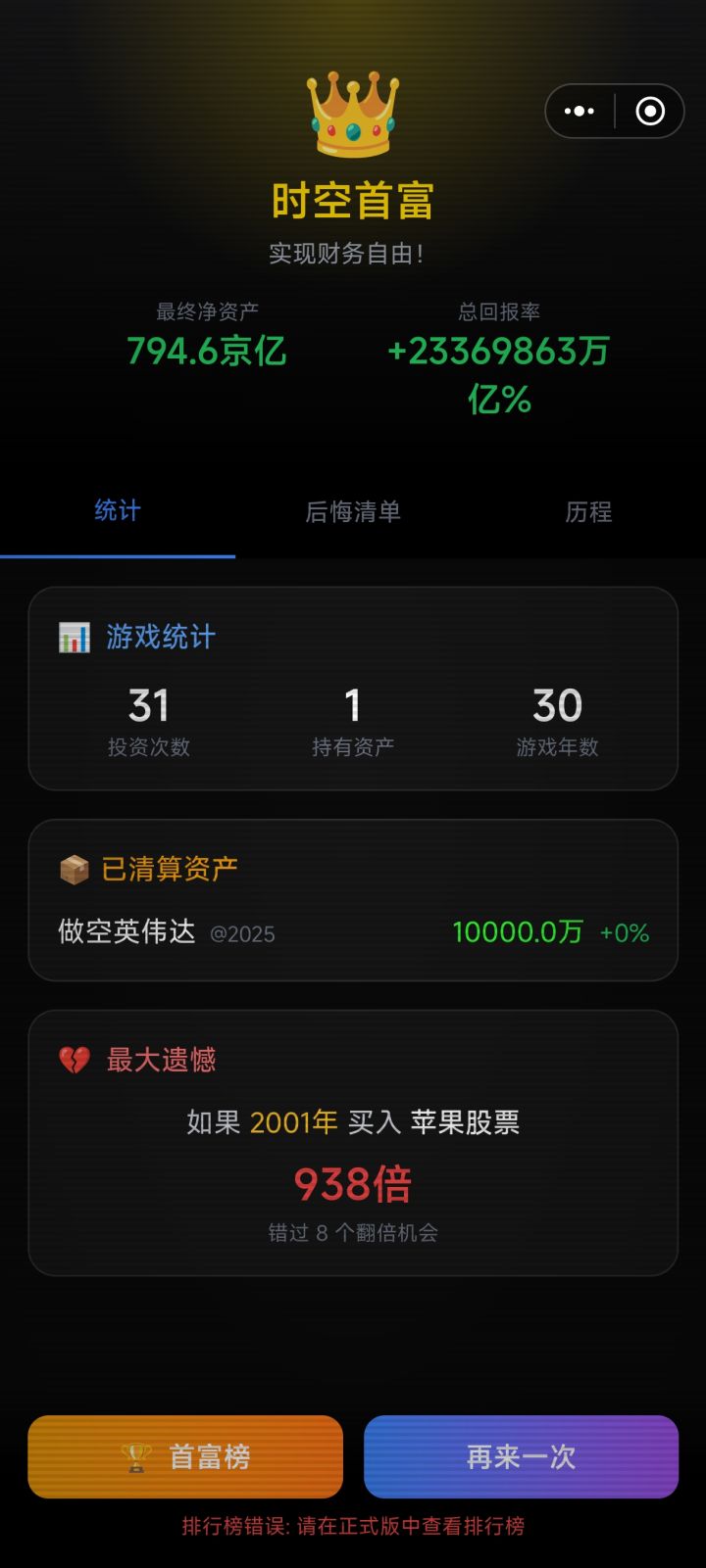 这个游戏挺好的.如果做穿越回过去的梦,或者写写小说.可以弄得更加真实,更有代入感.为生活增加点乐趣.接近极限的排行榜都显示不了。