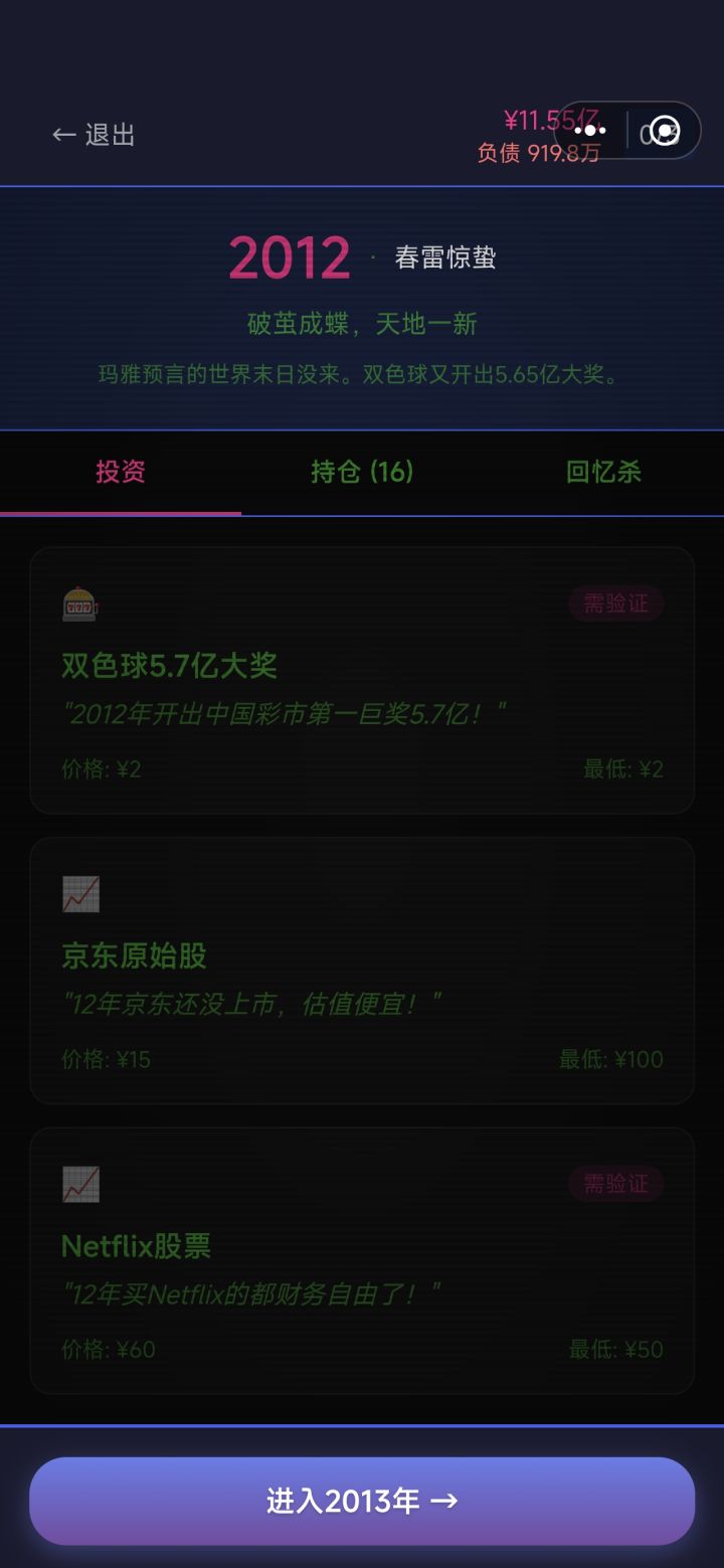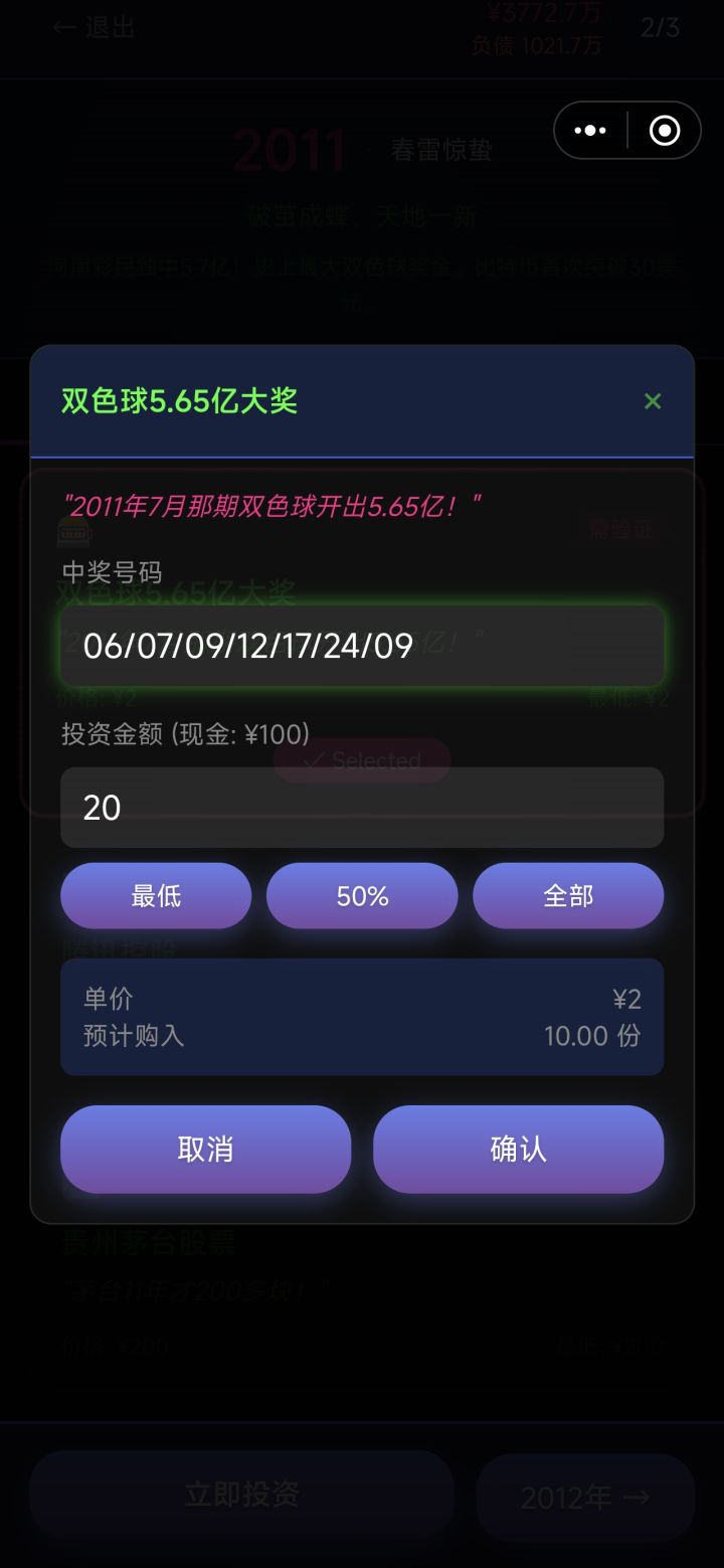 其实如果真的话,我们可以剑走偏锋,不用一步一步。老老实实买股票,比如有两次中奖的机会,你可以连买三次,还有那个足球比赛,直接梭哈足球那个之前忘记搞了,可能有人比我赚的还多,但是我还是想说买彩票直接完成原始积累