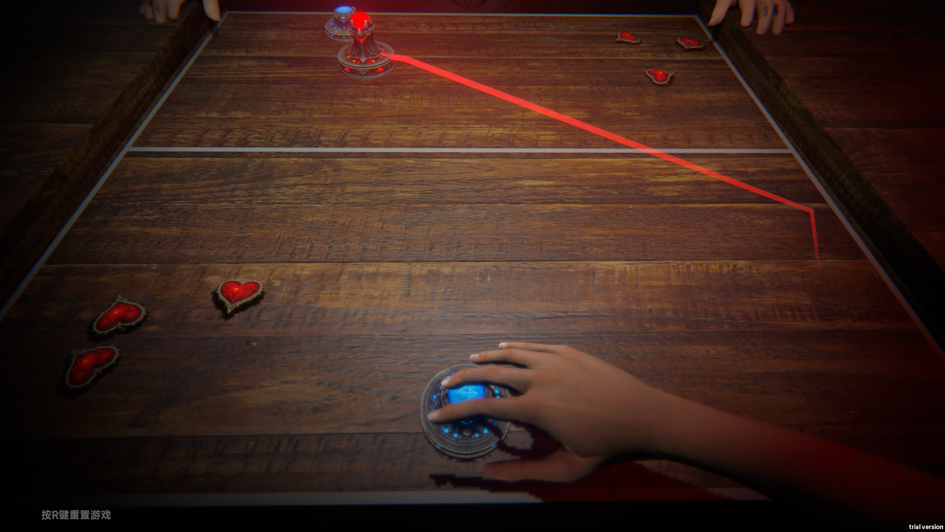我玩了两次,看了一次赢的结局一次输的结局,体量有一些小,但还算完整和功能齐全。最后才发现摄像头一直是亮的,这种小惊喜也很不错。本身这个题材和主题就是很有创意和可发挥性的,可以在这个主题上增加各种桌游玩法和牌类游戏,面具也可以有各种各样的功能,比如撞击到对面分裂出更多球之类的。也可以在这个环境中增加一些联机模式或者对战模式,感觉会很有意思。