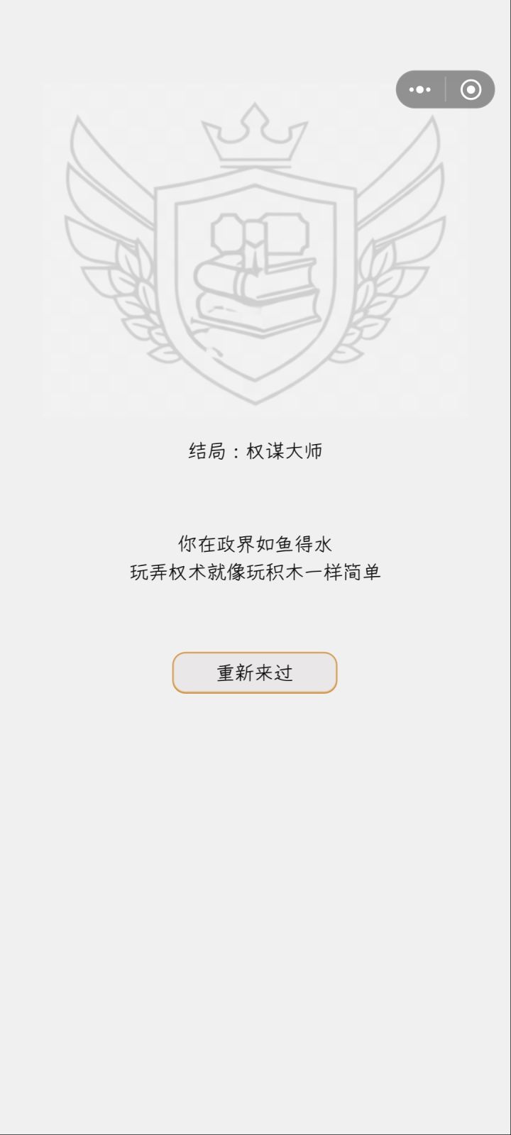 就很突然,居然是权谋大师...?难道是因为我努力刷每一个指标的值吗?无聊打发时间可以玩玩。