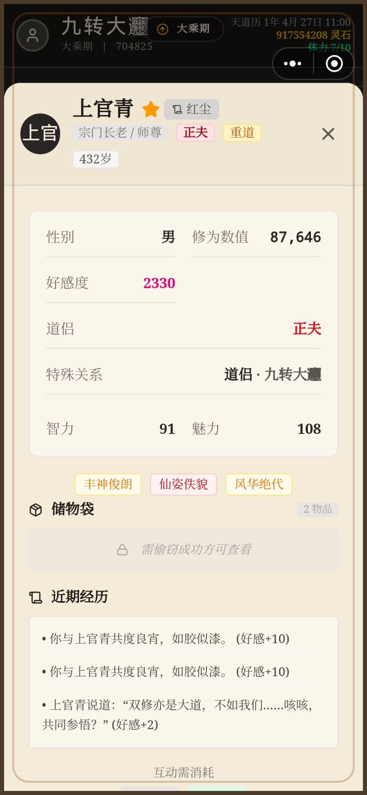 1.基本1.1 关于境界筑基期 500修为金丹期 1000修为元婴期 5000修为化虚期 10000修为炼虚期 50000 修为合体期 100000(10w)修为大乘期 500000(50w)修为飞升(渡劫期) 1000000(100w)修为之后还有更高等级,但没啥大用(不知道为什么飞升之后的界面是「逐出宗门」,疑似bug)1.2 关于战斗血量=气血=修为攻击力疑似有b