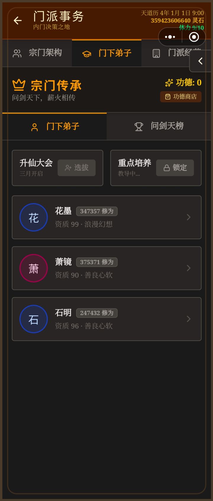 乱档了,剧情加载到这里直接覆盖了旧档数据,刷新也不行,没有办法培养弟子了