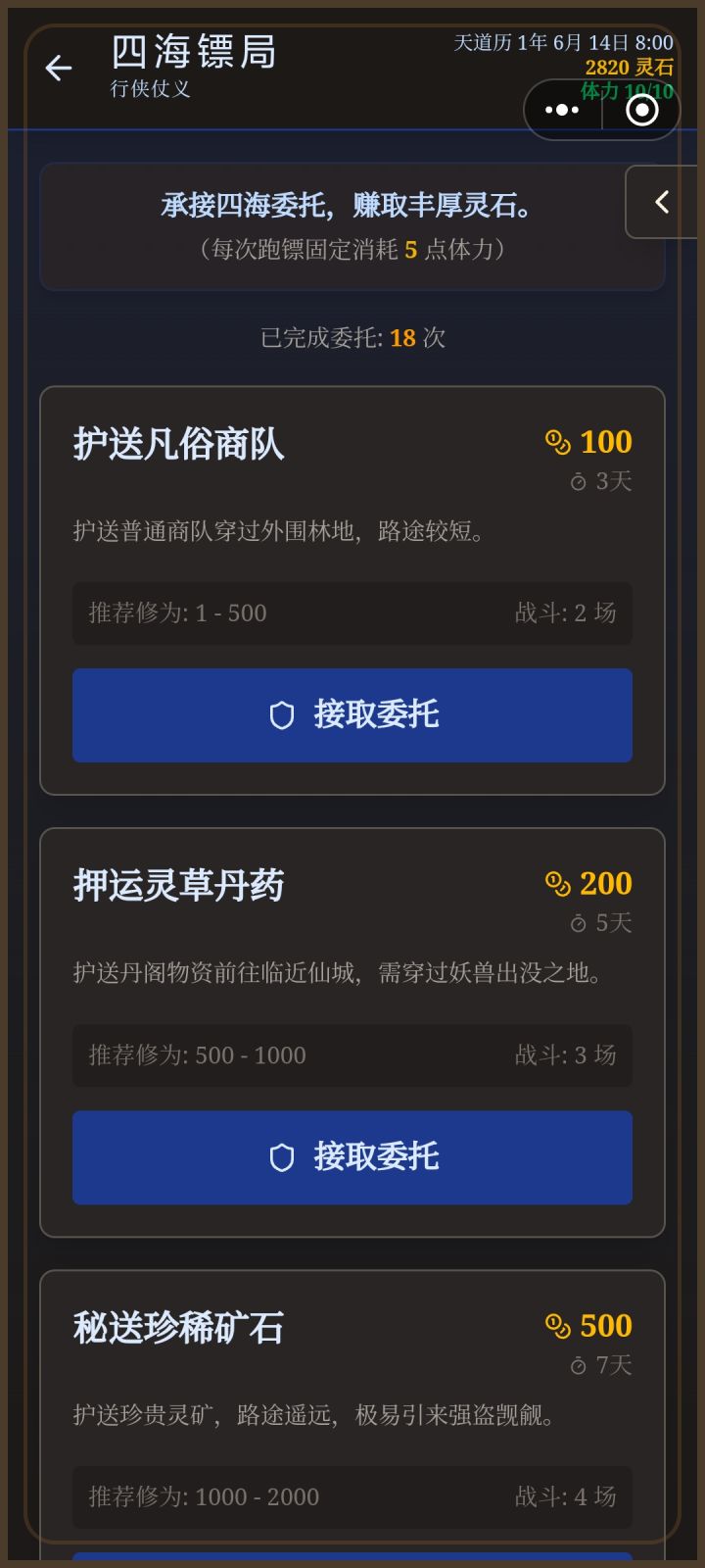 1.基本1.1 关于境界筑基期 500修为金丹期 1000修为元婴期 5000修为化虚期 10000修为炼虚期 50000 修为合体期 100000(10w)修为大乘期 500000(50w)修为飞升(渡劫期) 1000000(100w)修为(不知道为什么飞升之后的界面是「逐出宗门」,疑似bug)1.2 关于战斗血量=气血=修为攻击力疑似有bug,我好几个档无论修为多高、