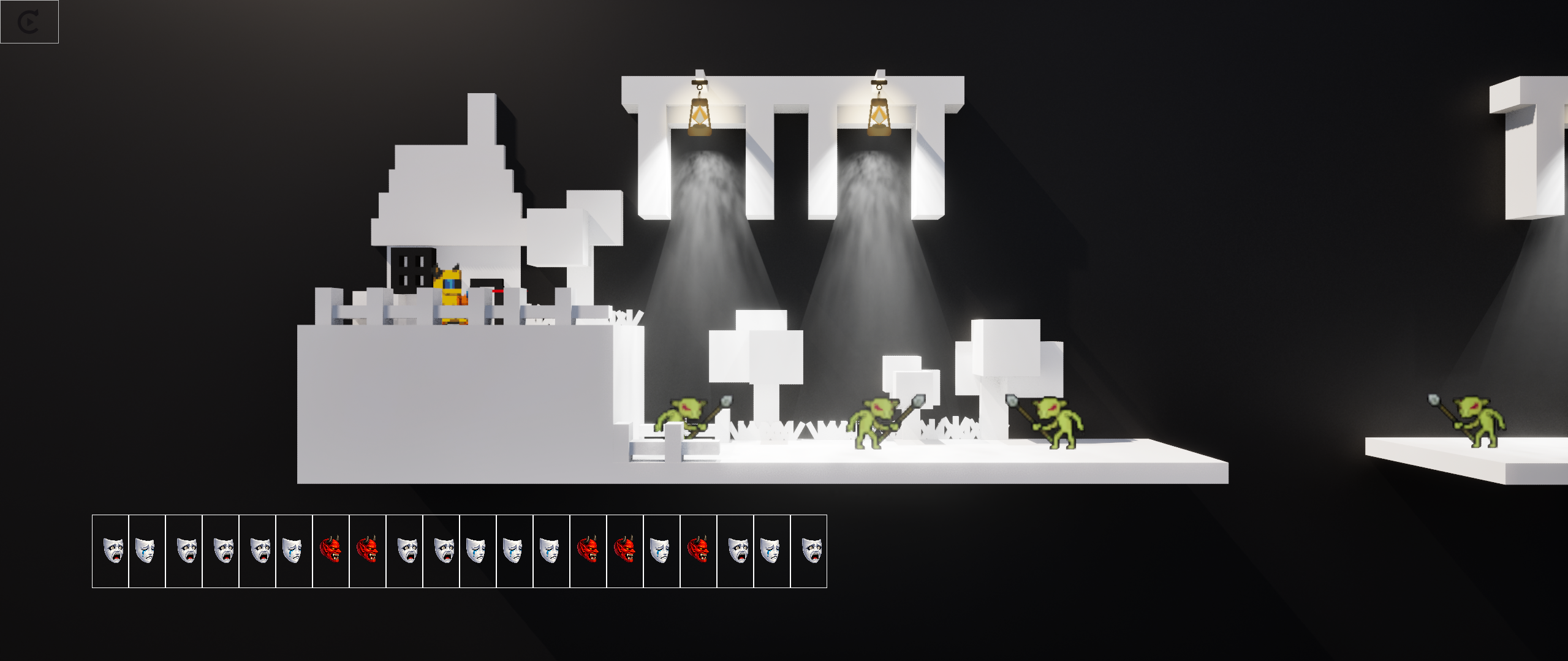 很有想法和创意的游戏,利用三种不同面具的特性,在结合关卡的陷阱,两者共同作用下,清理掉当前关卡中的怪物,完成当前关,前往下一关。