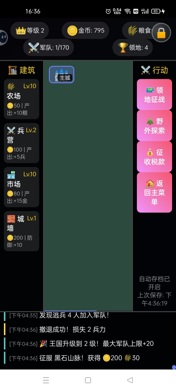 有点意思升到二级了,好像通关了,没粮了发育蛮好的一把