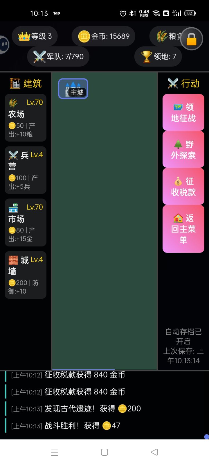 你的存档呢,还有粮食和士兵没有产出啊,怎么玩