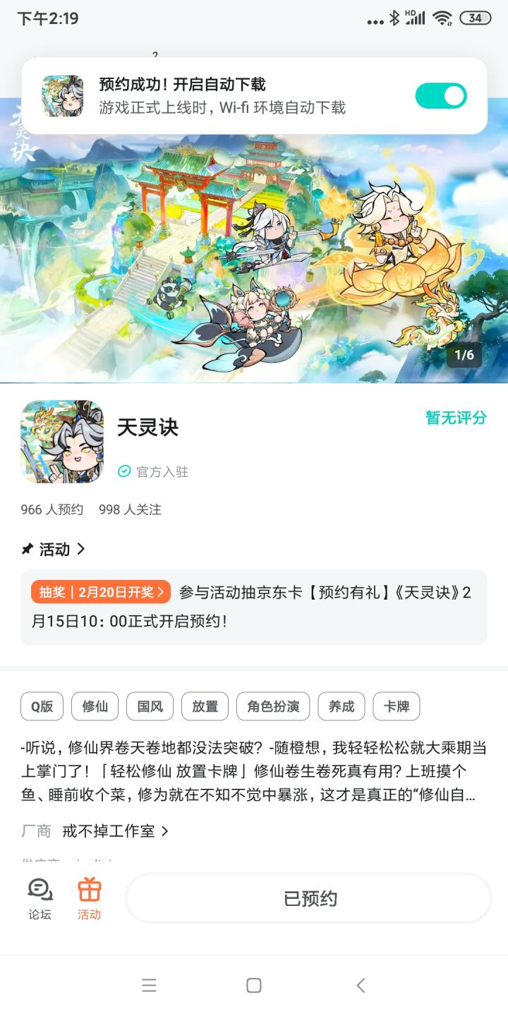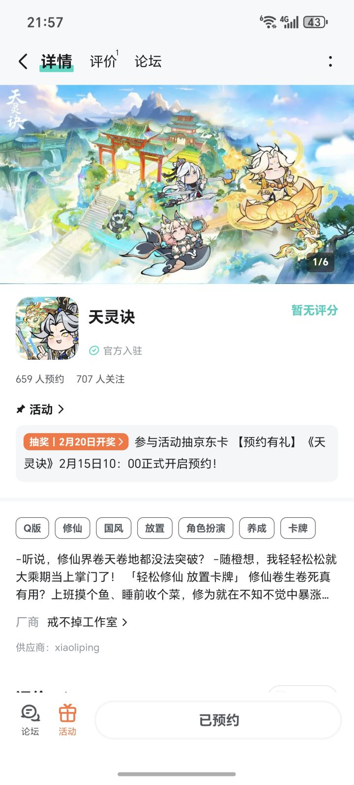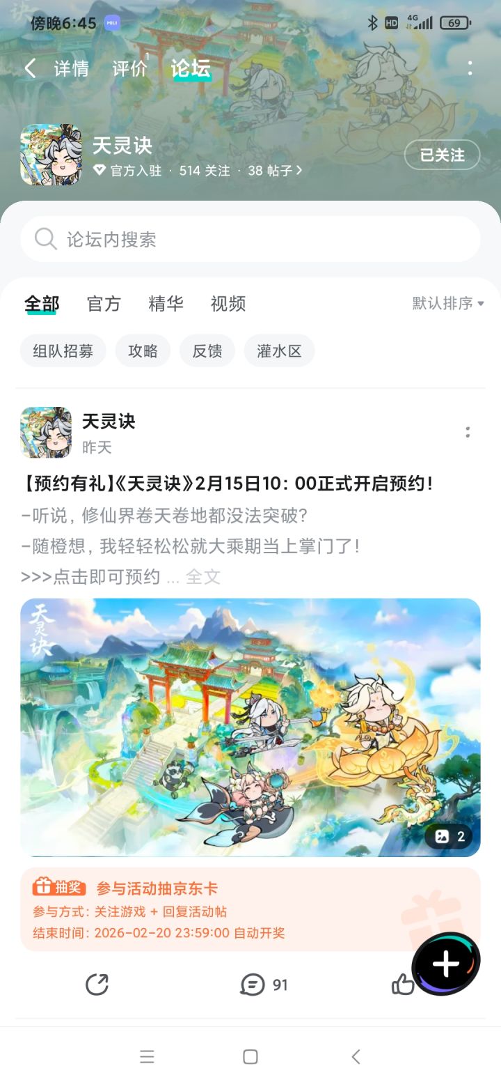 -听说,修仙界卷天卷地都没法突破?-随橙想,我轻轻松松就大乘期当上掌门了!>>>点击即可预约【参与方式】1.关注《天灵诀》且发新帖晒截图2.在本帖下方评论区分享发帖链接即可【活动时间】即日起~2026年2月20日 23:59【活动奖励】京东卡,共5份【注意事项】1.仅有符合活动要求的评论会被视为有效参与活动,若回复内容未能满足活动要求,则被视为无效回复,取消获奖资格。2.获