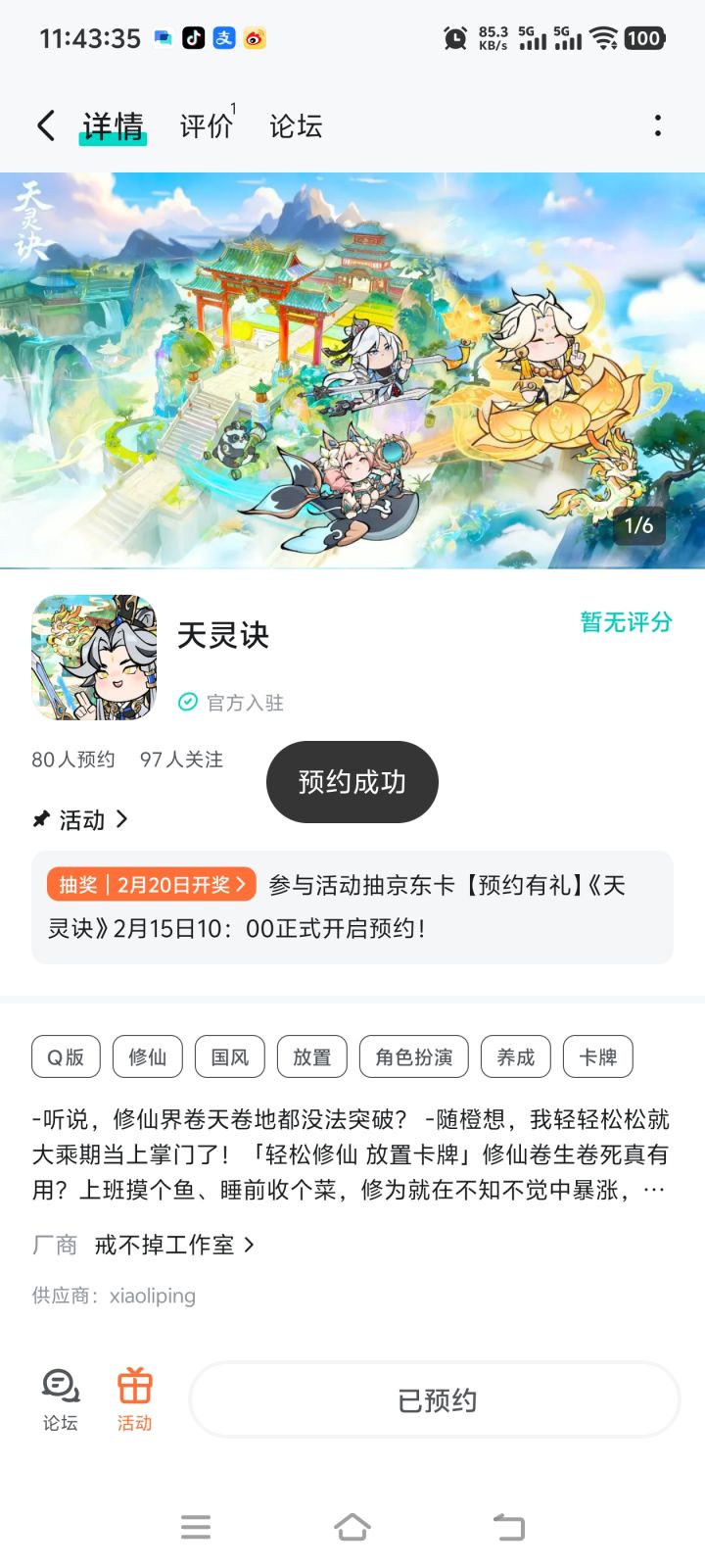 -听说,修仙界卷天卷地都没法突破?-随橙想,我轻轻松松就大乘期当上掌门了!>>>点击即可预约【参与方式】1.关注《天灵诀》且发新帖晒截图2.在本帖下方评论区分享发帖链接即可【活动时间】即日起~2026年2月20日 23:59【活动奖励】京东卡,共5份【注意事项】1.仅有符合活动要求的评论会被视为有效参与活动,若回复内容未能满足活动要求,则被视为无效回复,取消获奖资格。2.获