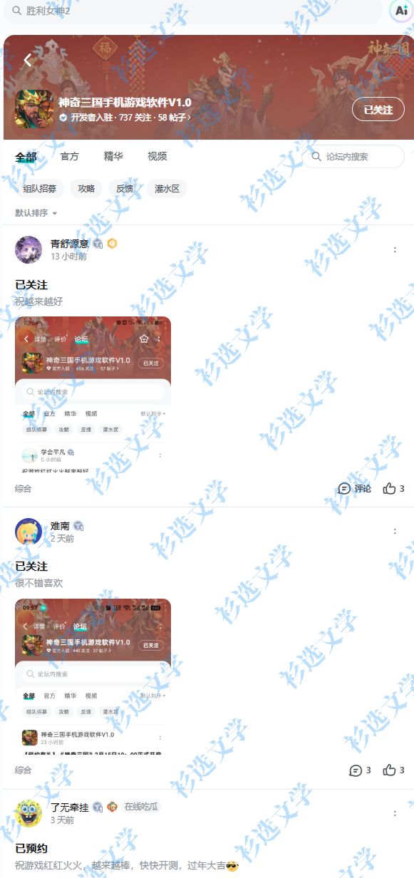 打江山,步步为赢,三国故事由你书写!全新放置策略三国卡牌《神奇三国》开放预约~>>>点击即可预约【参与方式】1.关注《神奇三国》且发新帖晒截图2.在本帖下方评论区分享发帖链接即可【活动时间】即日起~2026年2月20日 23:59【活动奖励】京东卡,共5份【注意事项】1.仅有符合活动要求的评论会被视为有效参与活动,若回复内容未能满足活动要求,则被视为无效回复,取消获奖资格。2