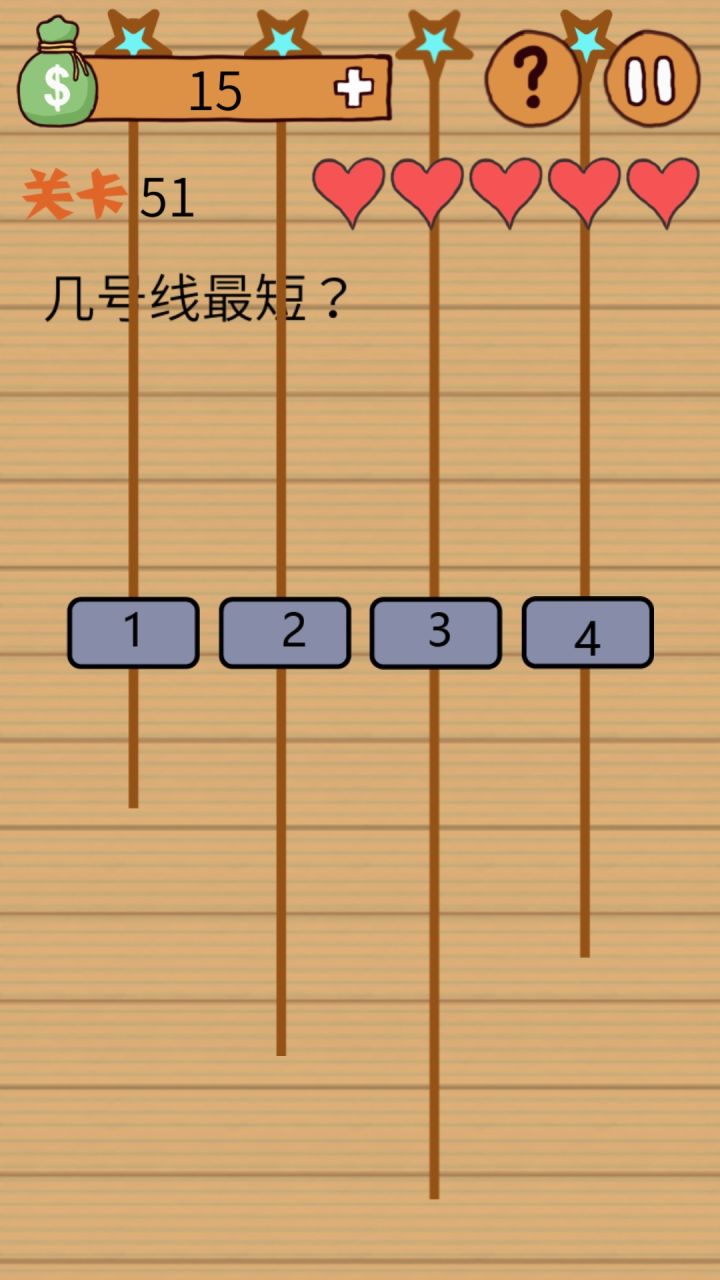 51关先把手机倒过来线就都露出来了选最短的就行了52关先把火柴移动到六上面变成八然后输入03853关把食盆丢到猪圈里猪就跟着进去了54关手机翻过去脸朝下55关按住上字一会儿就变成下了56关又是文字游戏把 小乌龟 三个字移出屏幕外57关这关比较麻烦先按住太阳等一会儿太阳就会变成月亮然后拉上窗帘小狗就睡了58关挪开上面那个五角星,就会露出 这个五角星 了点十次就好59