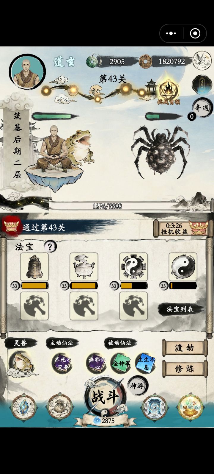 法宝种类很多,搭配起来非常有意思,能看出来在这个系统上下了功夫,很期待未来能有更多神仙组合!目前太缺防御法宝了!全是玻璃大炮,战斗结束太快了。希望后面能增加更多法宝。