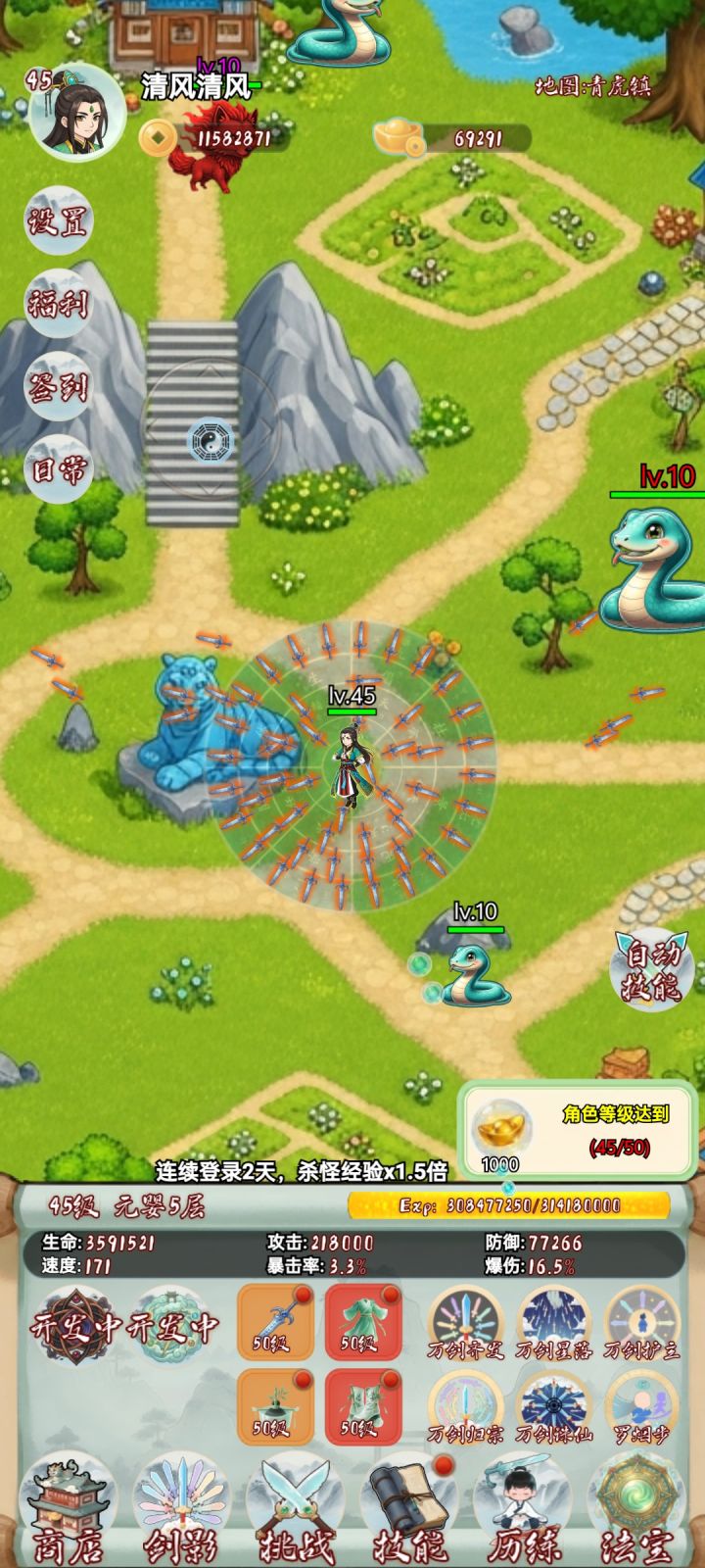 各位道友好,这里是《道友留步》还在熬夜修Bug的小弟心里没底,只希望这个版本不要翻车先汇报:新装备新地图新怪物调整战斗模式技能:观感更好新增装备:升星提升属性新增法宝:移动速度、攻击、暴击、爆伤新增日常:每日免费资源轻松领取商店:免费资源提升商店:免费资源提升怪物掉落:双倍任务奖励:双倍离线经验:双倍挑战经验:几何级增长之所以发,就是想提点人气各位
