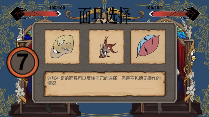 游戏中玩家用增加,减少,不操作对砝码进行操作,质量最高的(前提没有面具的加成)获得胜利,投掷完砝码后,会进行选面具环节,面具有反转选择的,也有加强伤害,减伤的,最后根据面具和砝码选择判别谁输谁赢。游戏目前最大的问题是玩家之间共享一个屏幕,这对后面选择面具的玩家有更多的选择权,造成了不平衡,但游戏本身玩法还算很好。还有一个小bug,第二次选面具的时间明显加快。