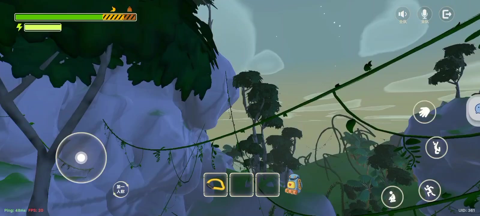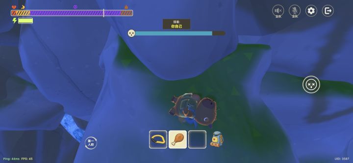吃东西过多会有饱和度,这个饱和度不会优先消耗,而是先消耗本身的体力,饥饿中毒和受伤会影响体力上限,中毒会自己痊愈,受伤用绷带会直接痊愈,至少肯定能消除受伤条大半条,没有摔到只剩一丝体力使用,大概还剩四分之一体力条的时候使用就可以让受伤全消失,所以这个绷带应该是直接使人满血的道具,扔道具可以蓄力,但是测试发现背包蓄力扔很远之后零点几秒内就会闪回身边,那个岩钉不是很了解用途,至少我对这山面试图触发他是