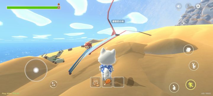 吃东西过多会有饱和度,这个饱和度不会优先消耗,而是先消耗本身的体力,饥饿中毒和受伤会影响体力上限,中毒会自己痊愈,受伤用绷带会直接痊愈,至少肯定能消除受伤条大半条,没有摔到只剩一丝体力使用,大概还剩四分之一体力条的时候使用就可以让受伤全消失,所以这个绷带应该是直接使人满血的道具,扔道具可以蓄力,但是测试发现背包蓄力扔很远之后零点几秒内就会闪回身边,那个岩钉不是很了解用途,至少我对这山面试图触发他是